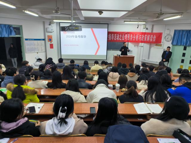 目前社会竞争愈加激烈,高校毕业人数创历史新高,公务员将成为大学生的一种较为理想的就业方式,但面对如此巨大的就业压力,大学生的考公方向却越来越迷茫,对此,计算机学院组织收集了部分学生的疑问困惑,并于2月23日在11#C110举办“E系列”精准就业指导活动之公考形势分析与政策解读会,邀请专业老师进行精准就业指导。