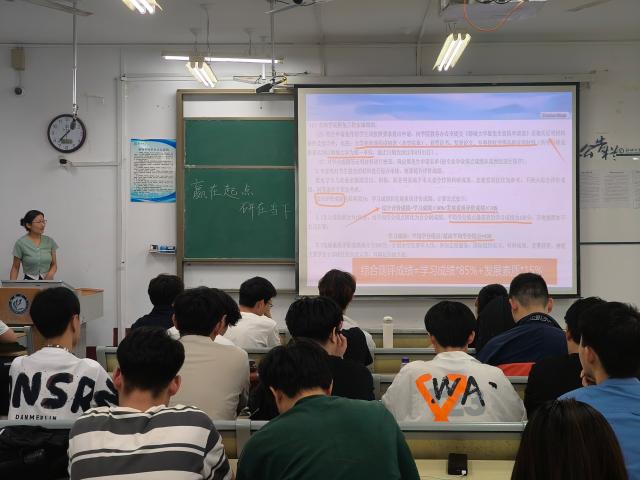 活动伊始,主讲人上台和同学们分享了自己保研的经历,并通过案例和数据分析,建议同学们在考研或保研准备阶段需明确自身的兴趣所在、优势特长以及未来的职业规划,再结合专业发展前景和学校综合实力,选出最契合自身发展的学校和专业。随后,主讲人与同学们分享自己的学习经验,强调了制定适合自己的学习安排的重要性,同时,他们也表示除学习成绩外,学科竞赛也对考研和保研起着很重要的作用,希望同学们积极参与学科竞赛。同学们认真聆听,做好笔记,并不时地向主讲人提出自己心中的疑问。活动结束后,同学们纷纷表示此次讲座为他们补充了跨考、择校等方面的注意事项,对未来的考研与保研工作有很大的帮助。