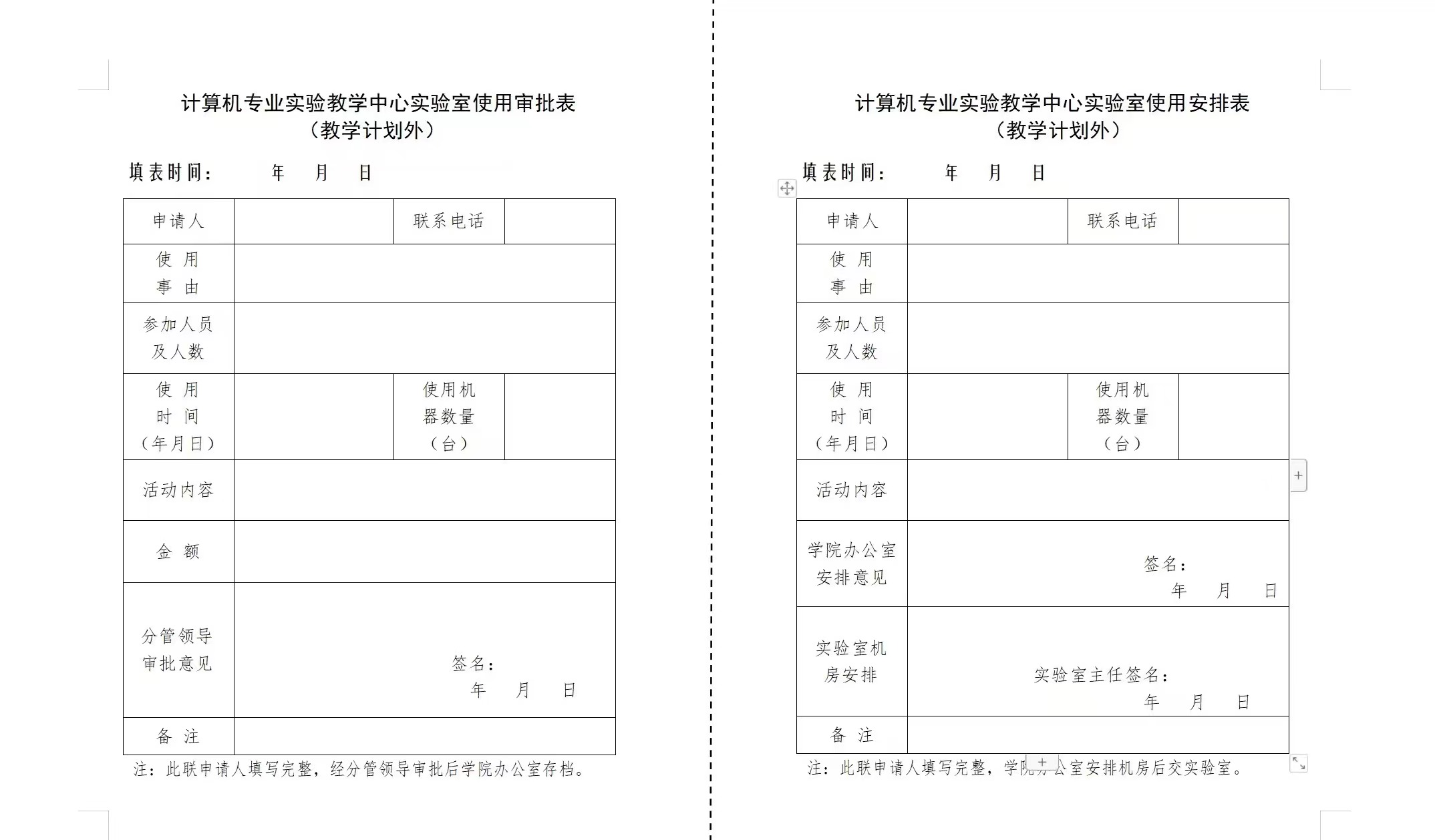 » 计算机专业实验教学中心实验室使用申请表(下载链接见最下方)