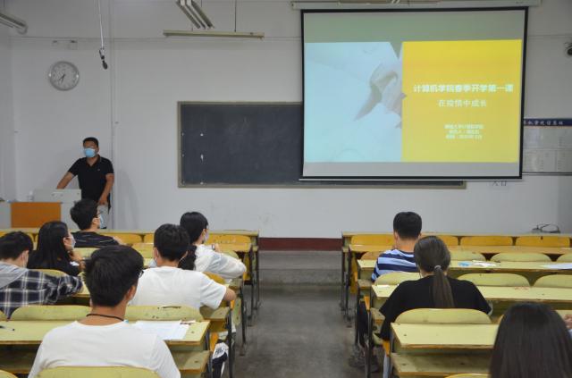 为切实合理地安排学院疫情防控工作,提升志愿者防控疫情的责任与意识,疏解疫情以来同学们产生的各种心理问题。6月1日,计算机学院于10号楼C120举办春季开学第一课“在疫情中成长”专题讲座,计算机学院辅导员唐龙龙作了《在疫情中成长》的报告。计算机学院疫情防控志愿者参加讲座。