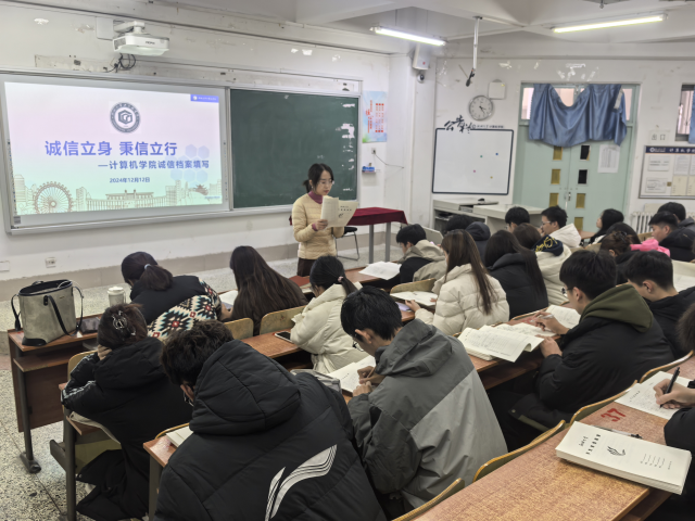 为加强诚信文化建设,建立健全诚信评价体系,增强学生们的诚信观念,提高学生们的道德修养,12月12日 ,计算机学院于11号楼C104开展诚信档案填写活动。辅导员邹晓凤担任主讲人。