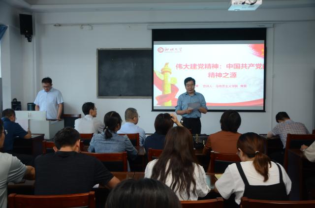 “人无精神则不立,国无精神则不强”。黄昊从伟大建党精神形成的基础和条件、伟大建党精神的深刻内涵、 伟大建党精神是中国共产党人精神谱系的历史源头和高度凝练、在新时代弘扬伟大建党精神四个方面对伟大建党精神进行宣讲。黄昊指出,建党精神可高度概括为:坚持真理,坚守理想;践行初心,担当使命;不怕牺牲,英勇斗争;对党忠诚,不负人民。继承传扬伟大建党精神,必将成为激励全党全国人民迈进新征程、奋进新时代的强大精神动力。作为教育工作者,要把学习七一重要讲话精神同党史学习教育结合起来,同推动教书育人方式改革创新结合起来,加强和改进党对教育工作的全面领导,落实立德树人根本任务。宣讲报告内容丰富、脉络清晰,深入浅出、通俗易懂,有理论、有思想、有事例,具有很强的指导性和针对性,引起听众热烈反响。广大党员纷纷表示,在本次宣讲报告中深受启发,受益匪浅,牢记初心使命,担当作为奋进,努力把学习成果转化为实际工作成效。
