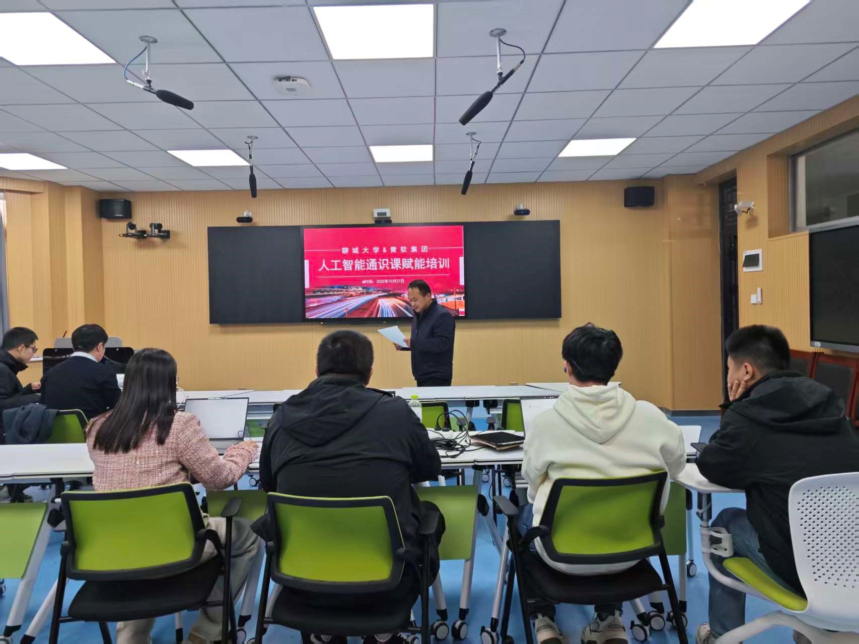 为深入贯彻国家关于发展人工智能的重要指示精神,着力培养具备AI素养与创新实践能力的高质量人才,10月27日,威九国际携手校企合作单位青软集团,在教学楼A412成功举办了人工智能通识课师资赋能培训。计算机学院副院长贾保先、人工智能通识课教研组全体教师共同参加了本次培训。培训会特邀青软集团平台运营专家李秀兰、技术工程师史大鹏担任主讲。